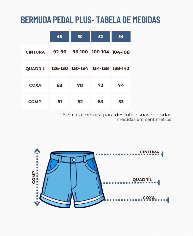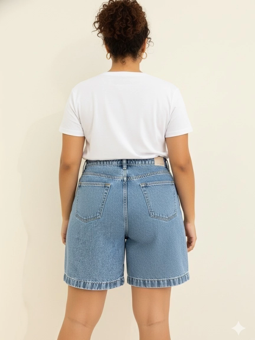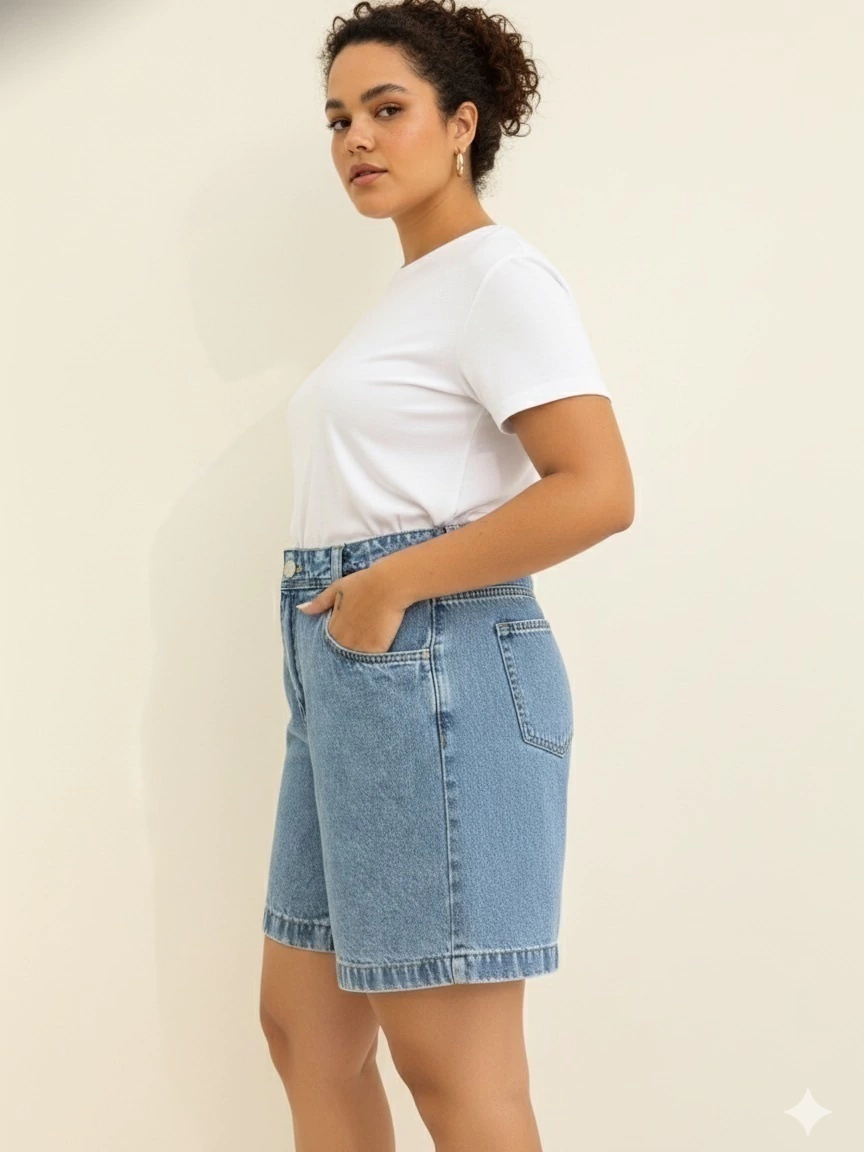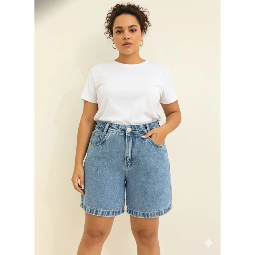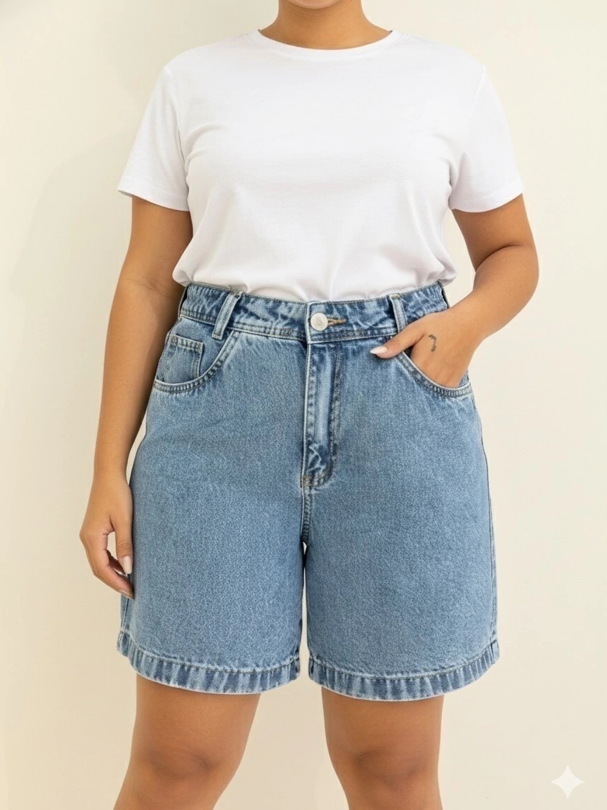 Desenvolvido especialmente para o corpo Plus Size, este shorts/bermuda combina o estilo clássico Jeans com a modelagem soltinha que garante conforto o dia todo. O tecido puro jeans (100% algodão) é de alta qualidade e oferece excelente caimento. Características e Diferenciais: Modelagem: Soltinha, estilo Bermuda Meia Coxa ou Shorts, proporcionando liberdade de movimento. Tecido: Jeans 100% Algodão Premium (Não estica / Sem elastano), o verdadeiro tecido jeans que proporciona durabilidade e estilo. Cintura: Cintura Alta que modela o corpo, cós com passantes, fechamento por zíper e botão. Bolsos: Bolsos frontais e traseiros funcionais. Cor: Lavagem azul clara/média, versátil e ideal para looks de verão e casuais. Veste: Perfeito para o segmento Plus Size. Tamanhos Disponíveis (Veste do 48 ao 54): Combinações: Combine com camisetas brancas (como na foto), croppeds, blusas soltas ou camisas para um visual casual e moderno. Garanta seu Shorts Jeans Plus Size 100% Algodão e desfrute de muito estilo e conforto!