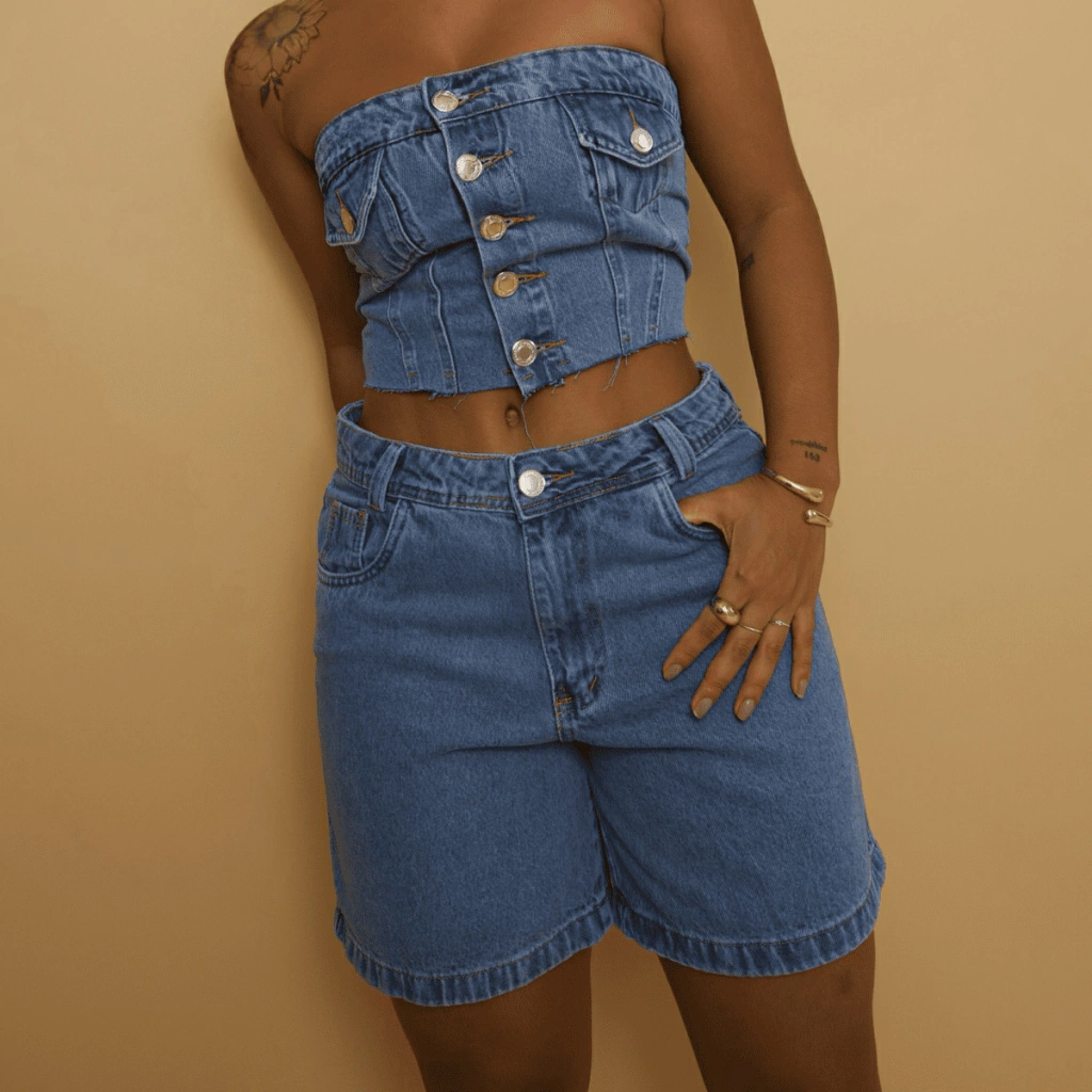 Bermuda Jeans Short Feminino Denim Básico Com Bolso Melhor Qualidade