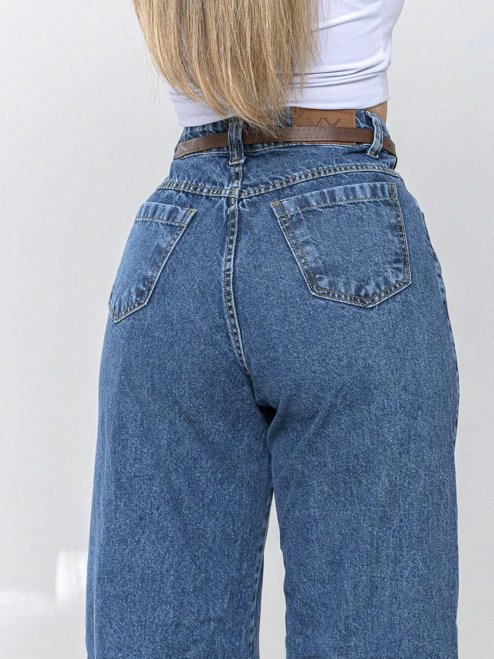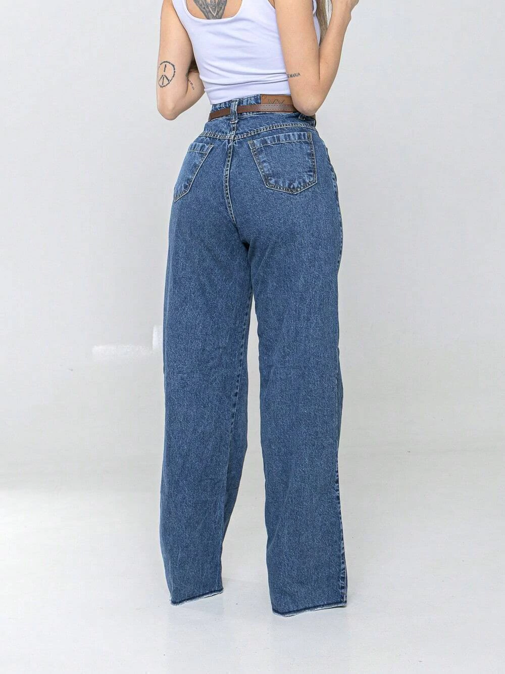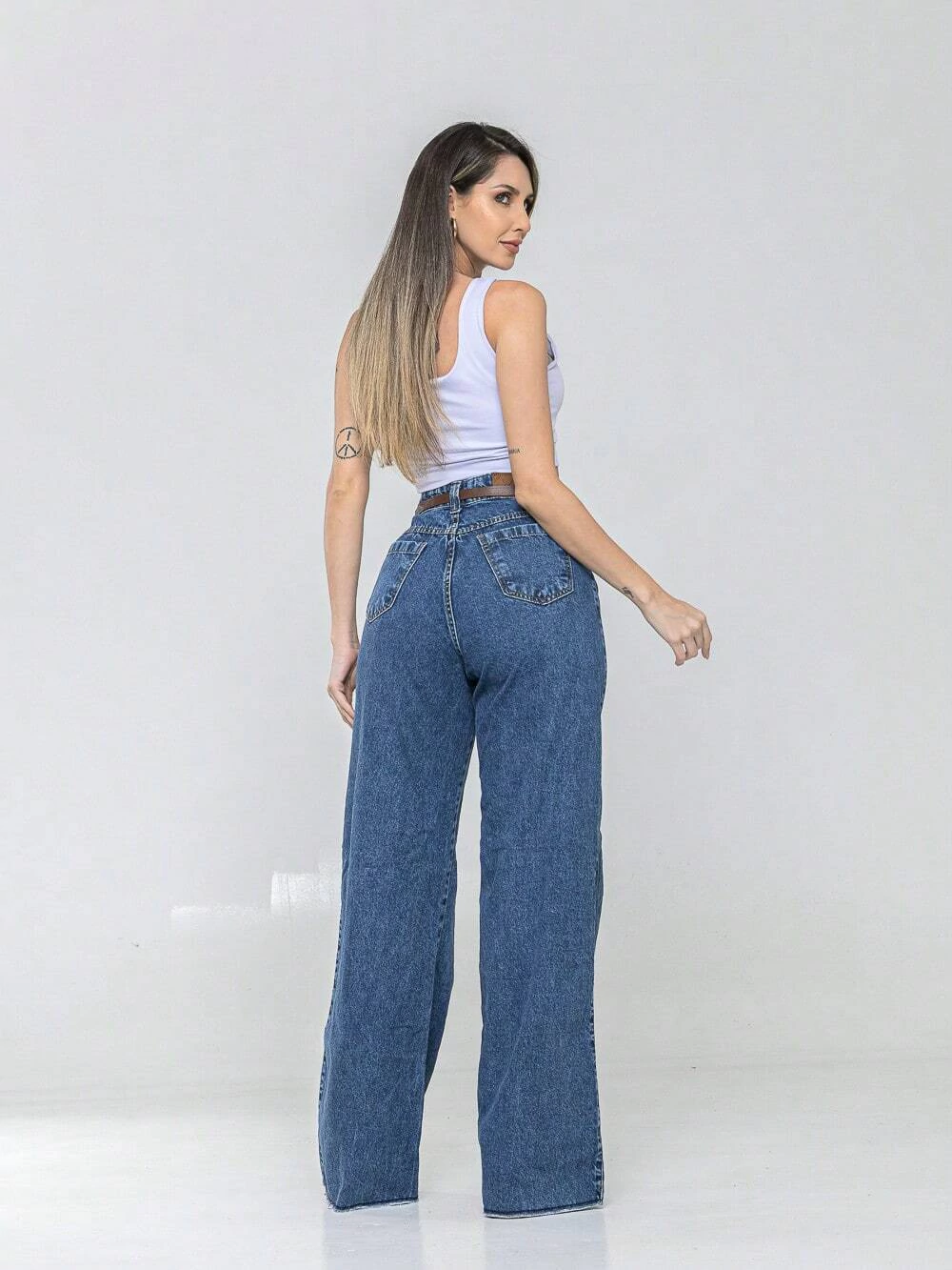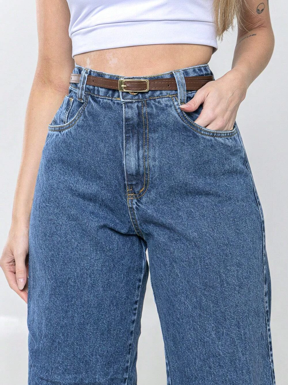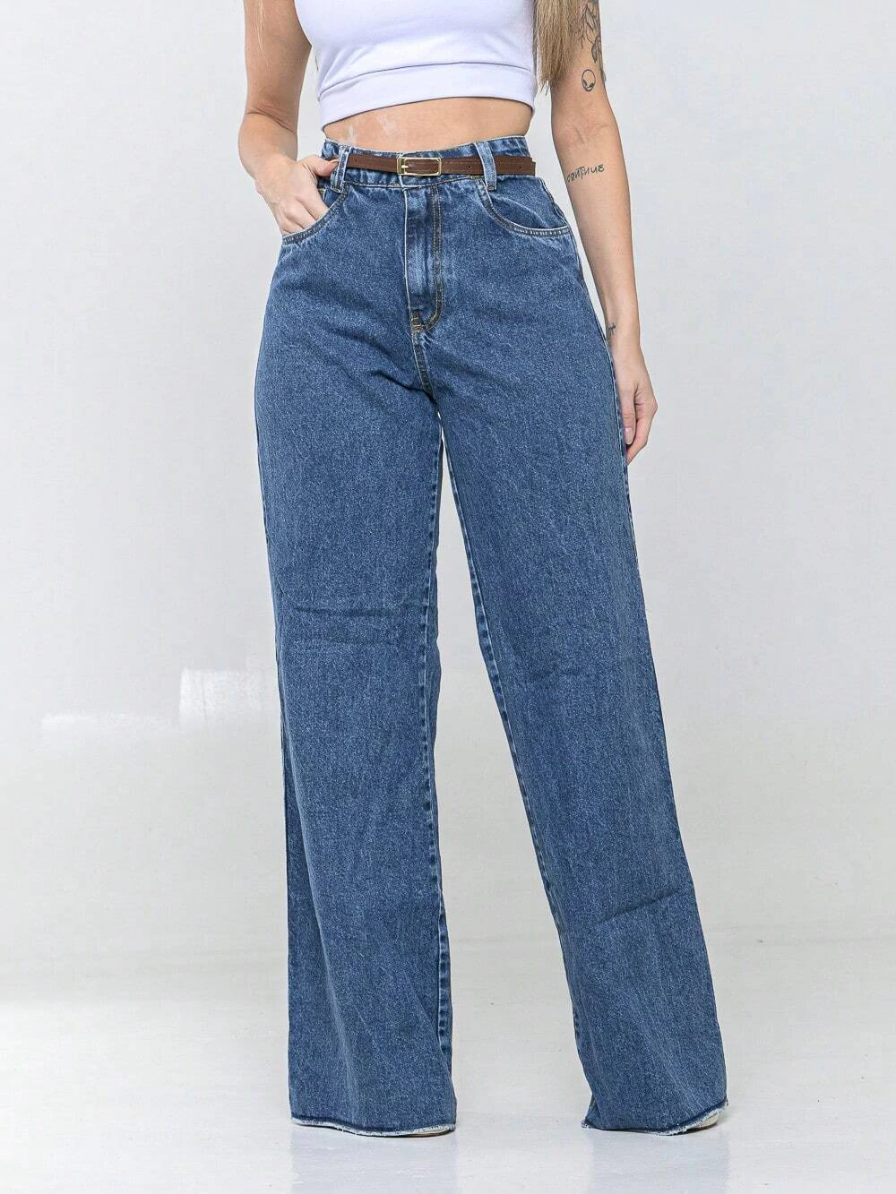 Calça Jeans Feminina Wide Leg Pantalona Com Cinto Marrom com Bolso Qualidade Premium