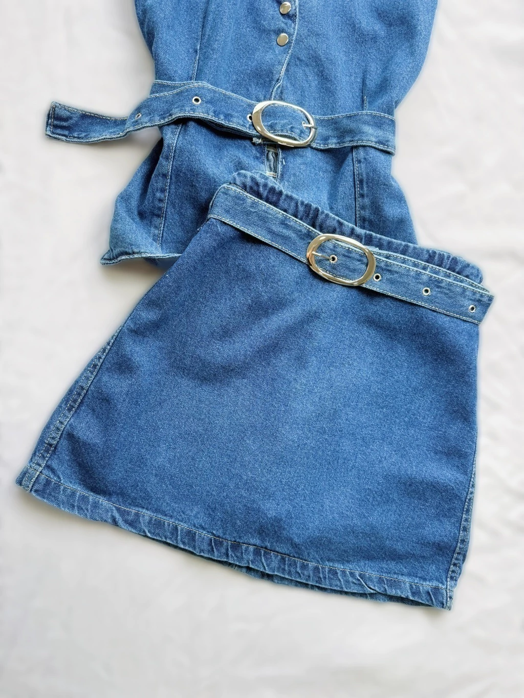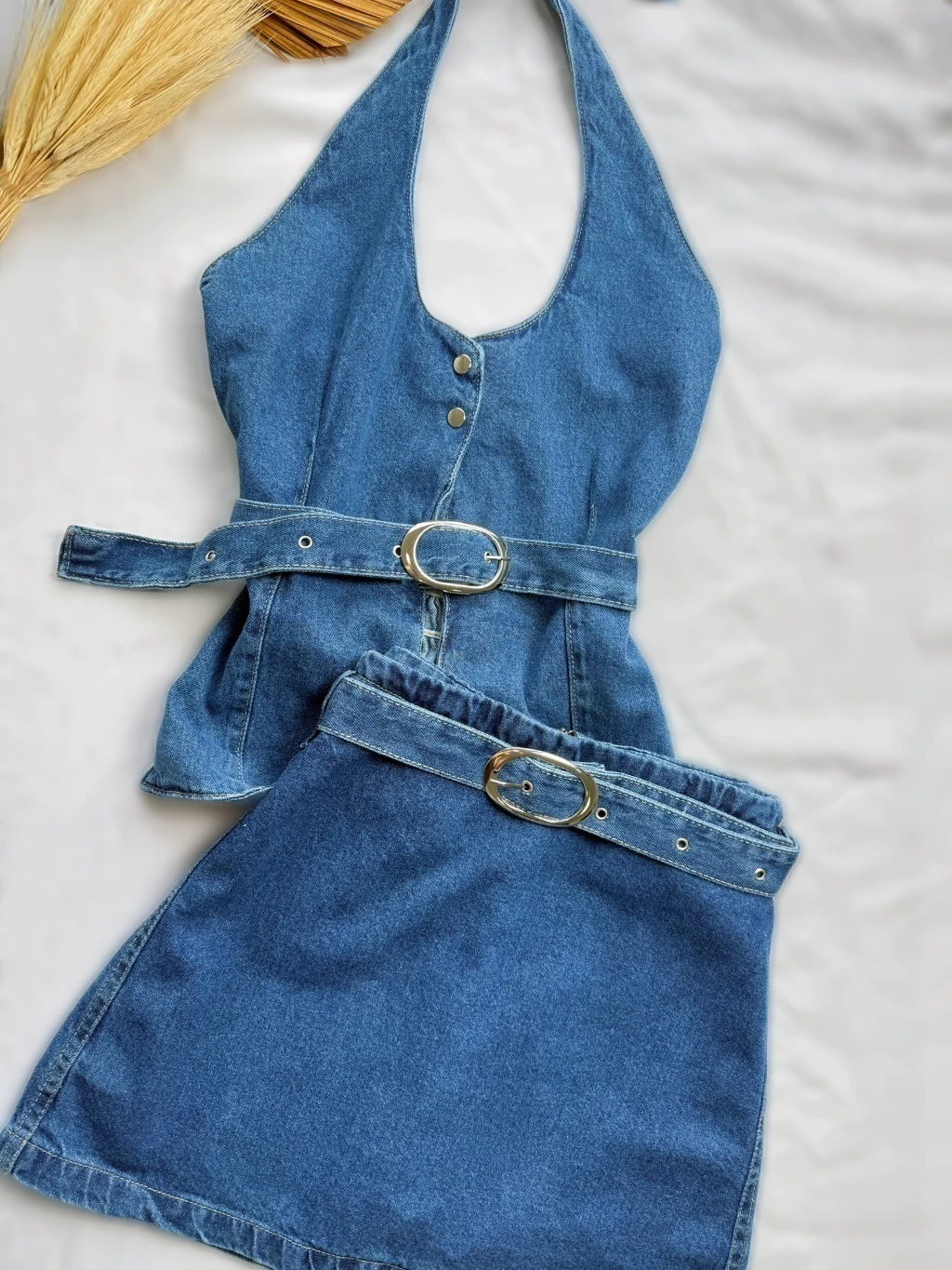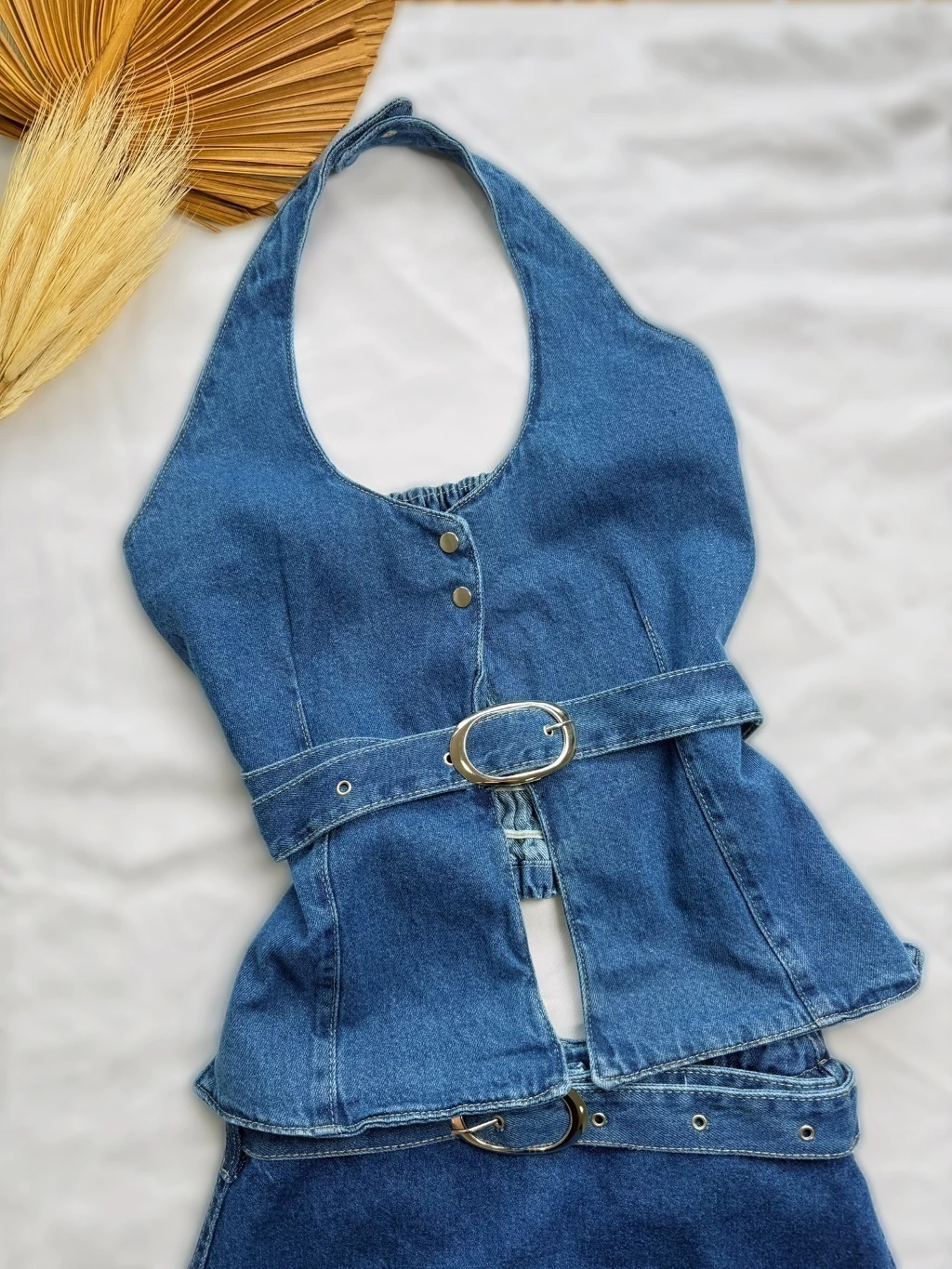 Aposte no charme e na praticidade do nosso Conjunto Feminino 100% Jeans! Perfeito para quem busca um look moderno com ajuste ideal. Tecido: 100% Jeans (Material de alta qualidade e resistência) Cor: Jeans Azul Médio (Lavagem clássica e atemporal) Cropped: Modelo Halter (Frente Única) com fechamento em botões frontais. Diferencial de Conforto: Possui LASTEX (Elastex) na parte de trás, garantindo um ajuste perfeito ao corpo e muito mais conforto. Peça Inferior: Short-Saia com cós elástico na parte de trás, que oferece a segurança do short com o visual da saia. Detalhe: Acompanha cinto regulável com fivela dourada, que valoriza a cintura. Ajuste Perfeito: O lastex nas costas do cropped faz com que a peça se molde ao seu corpo de forma confortável, sem apertar. Segurança e Conforto: O Short-Saia permite liberdade total de movimento. Tecido Premium: Confeccionado em Jeans Puro (100%), garantindo durabilidade e excelente caimento. Look Versátil: Use as peças juntas ou separadamente e multiplique seus visuais. Adquira o seu agora! O conforto e o estilo que você procurava estão neste conjunto!