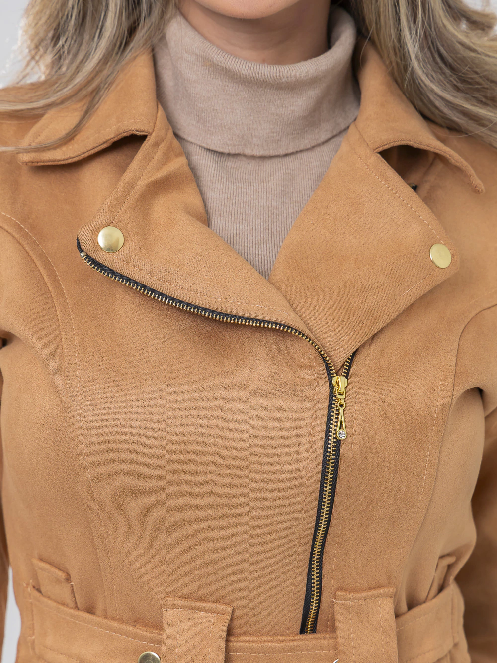 Jaqueta Suede Camurça Fivela Botão Cinto Premium