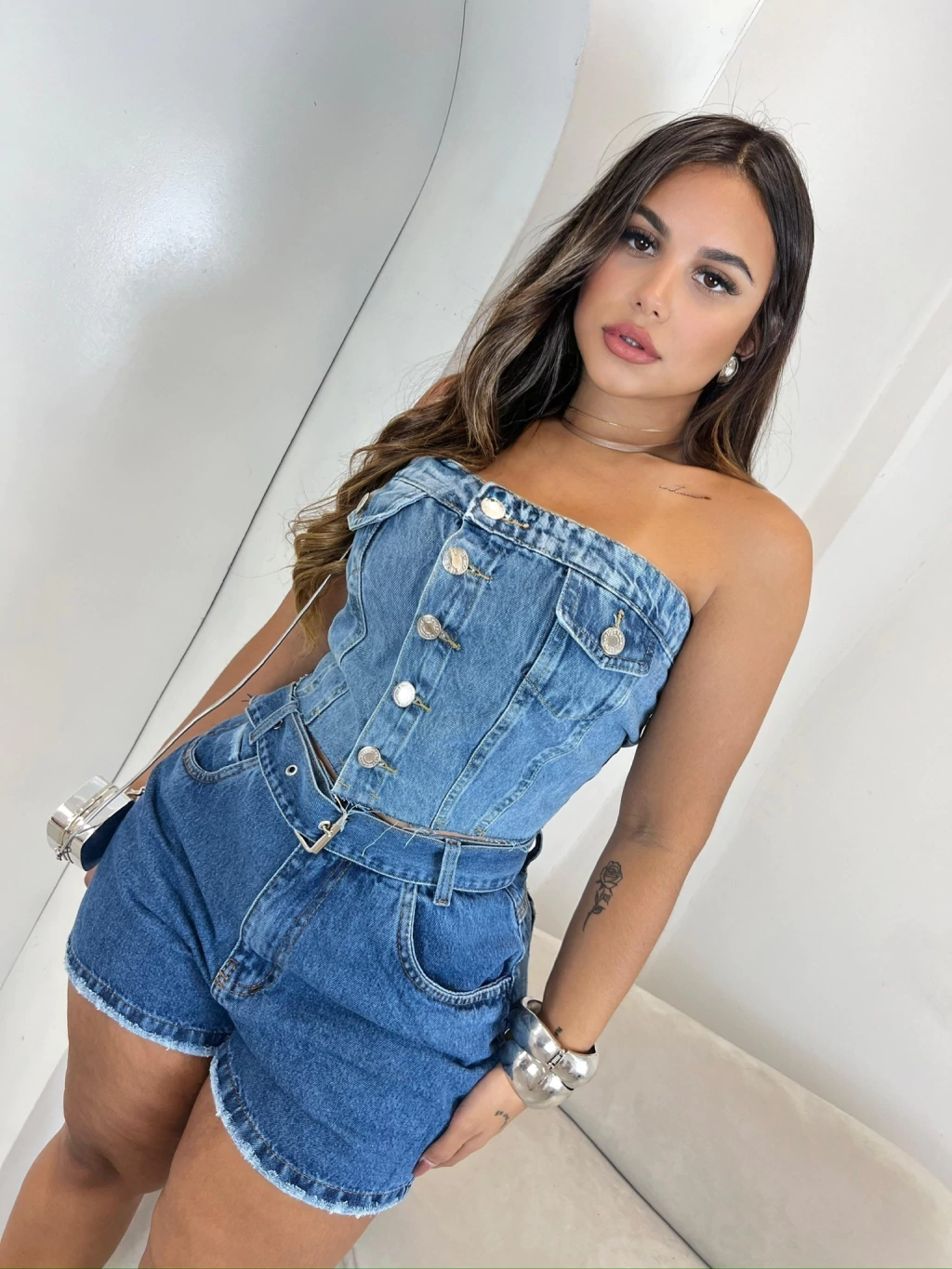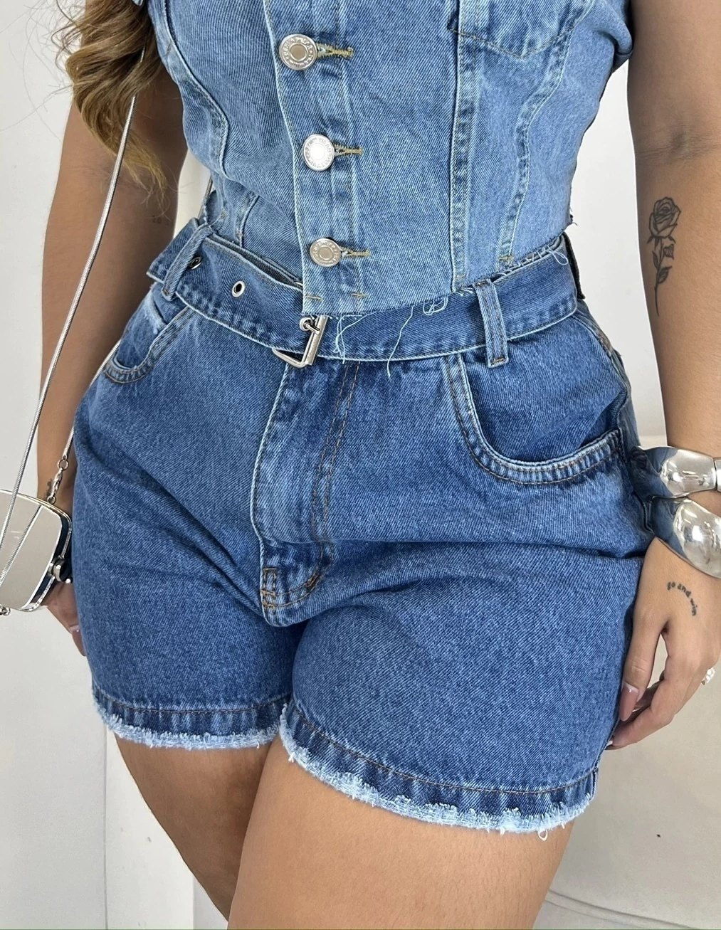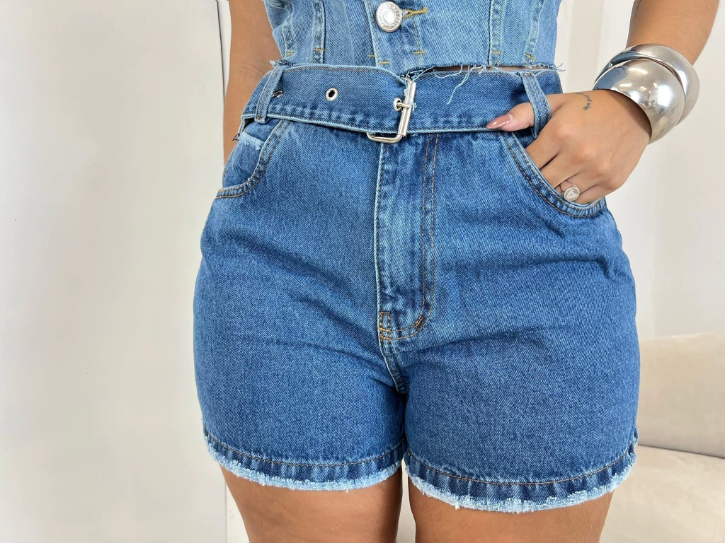 Short Jeans Feminino Com Cinto Com Bolso Melhor Qualidade