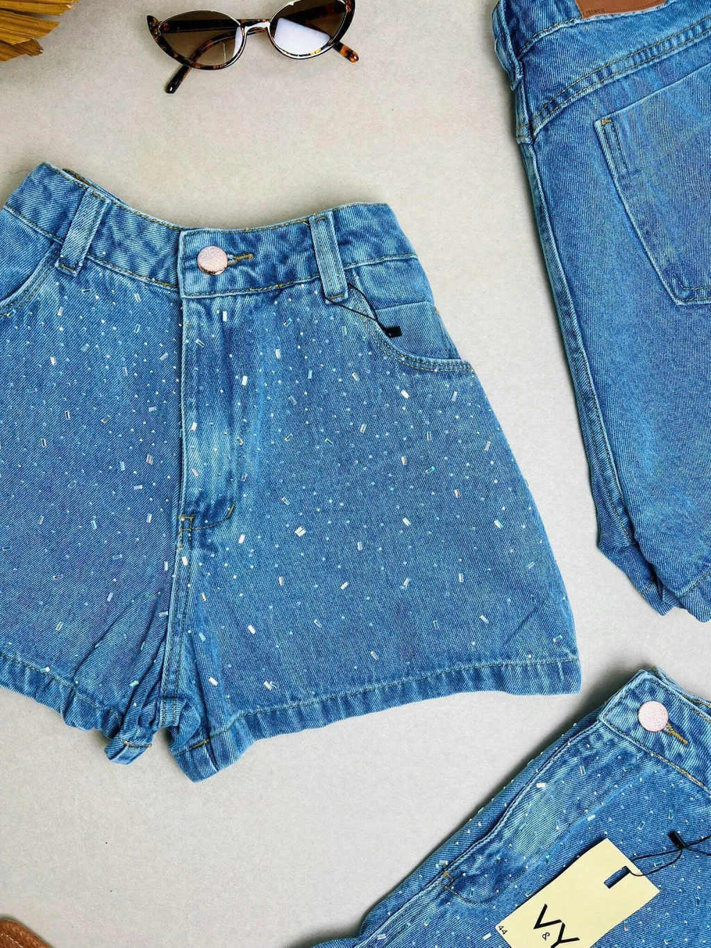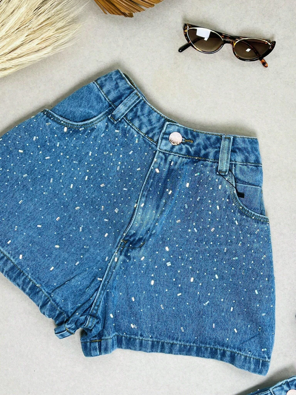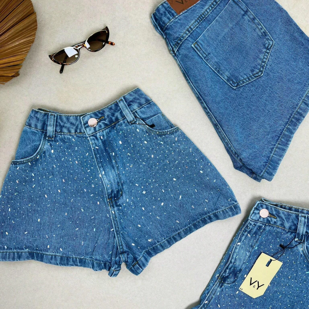 Short Jeans Feminino Granulado Colorido Pedraria Pedrinhas Com Bolso Melhor Qualidade