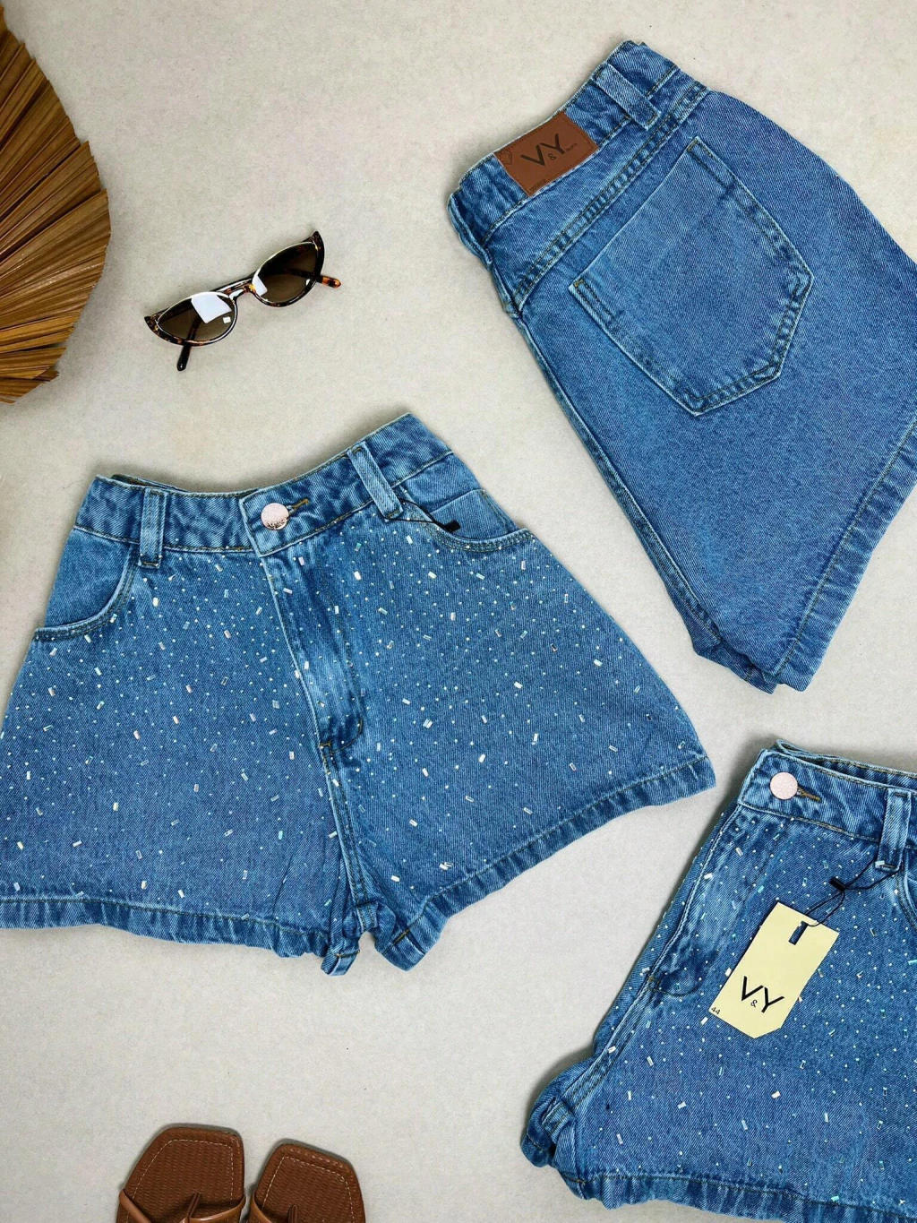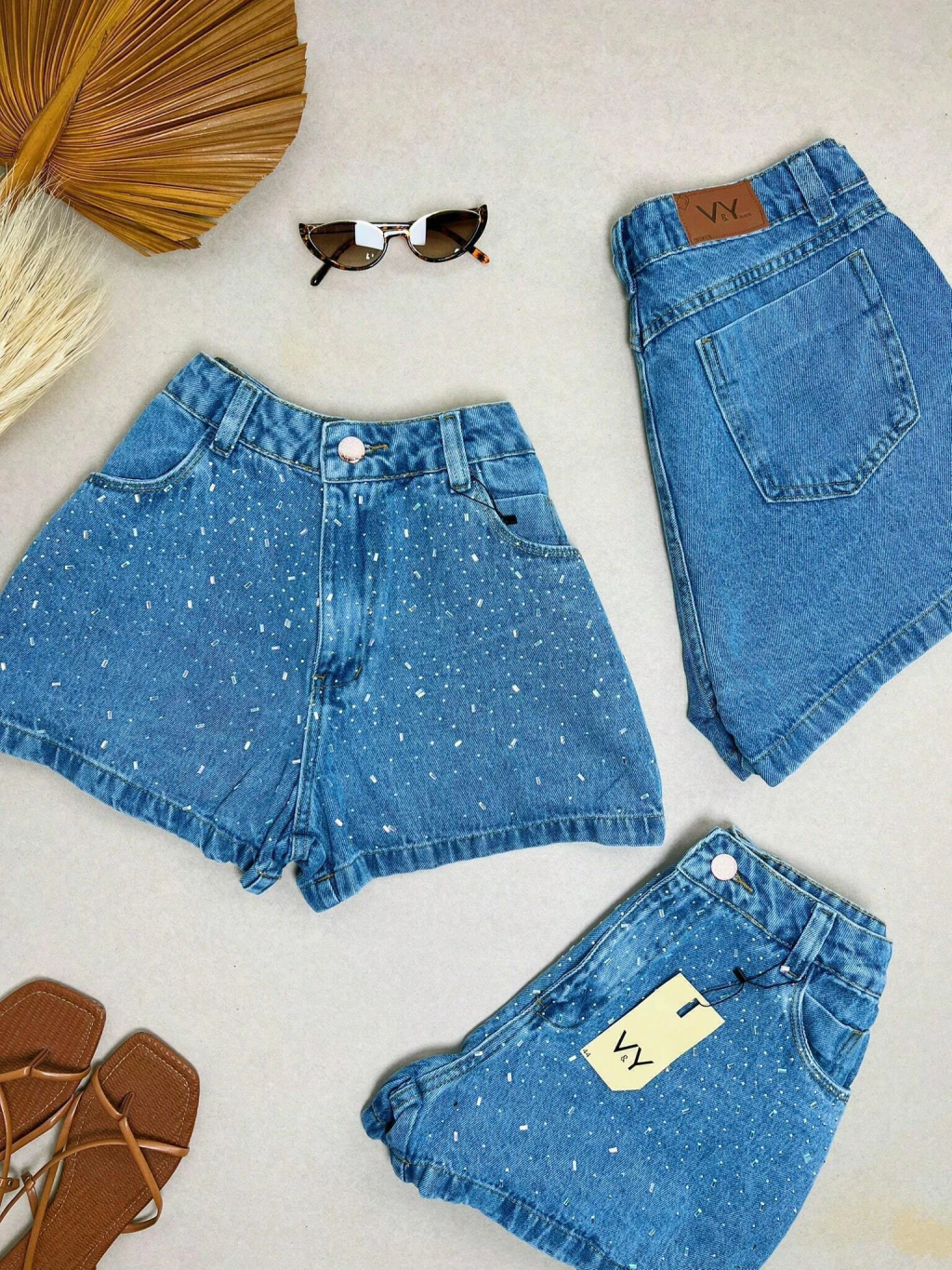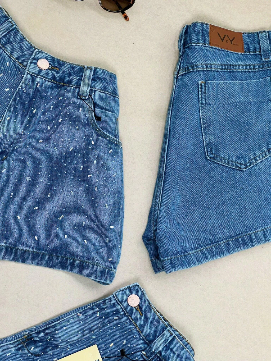 Short Jeans Feminino Granulado Colorido Pedraria Pedrinhas Com Bolso Melhor Qualidade
