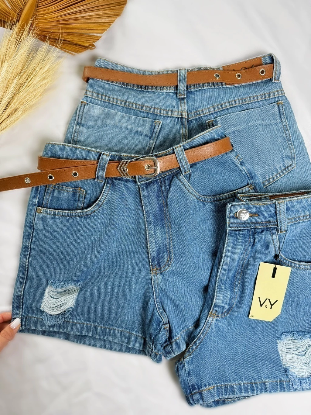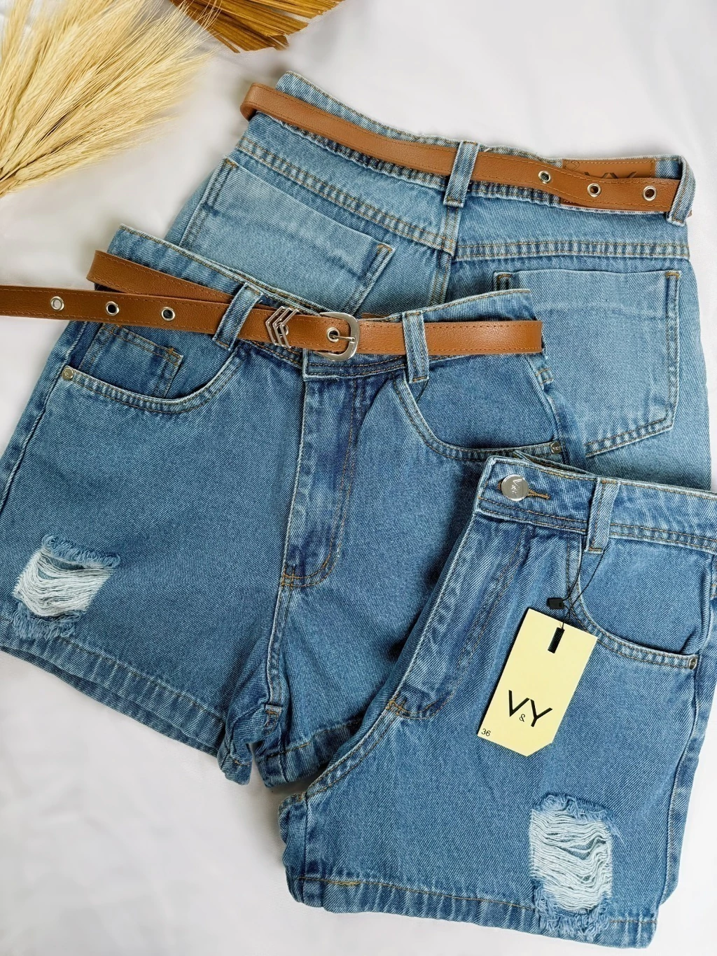 Entre no verão com estilo e conforto! Nosso Short Jeans Mom é a peça chave para montar looks incríveis, despojados e na moda. O modelo "Mom" com cintura alta valoriza a silhueta, e o detalhe destroyed (rasgadinho) confere um toque moderno e cool.
